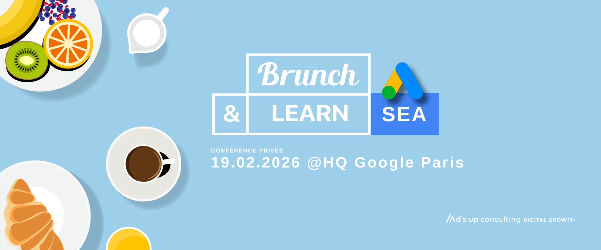 Je souhaite m'inscrireRejoignez-nous pour une session exclusive du Brunch&Learn, en direct du siège de Google à Paris, le jeudi 19 février à partir de 9h. Aux côtés des experts Google et Ad’s up Consulting, plongez au cœur de la nouvelle ère du Search. Avec le déploiement massif de l’AI Overview et de l’AI Mode, les LLMs sont les nouvelles interfaces de recherche, de recommandation (GEO) et d’achat. Découvrez comment ces nouvelles fonctionnalités transforment la manière de structurer vos campagnes Google Ads en 2026.