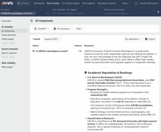 - Pour comprendre si ChatGPT s’appuie réellement sur Google, la première étape a consisté à extraire les requêtes générées par l’IA, souvent appelées « requêtes en éventail », ainsi que les URL qu’elle renvoie en réponse. Ces données ont été collectées à l’aide des radars de marques d’Ahrefs.